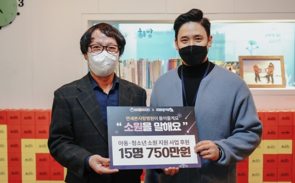 이 기금은 연세본사랑병원과 함께 출원한 "소원기금"을 통해 진행했어요. 매달 150만원씩 적립해 연말에 아이들에게 감동을 전하고 있는 "소원을 말해요" 우리 동네 아이들의 소원을 이뤄주는 별똥별이 있다는게 참으로 자랑스럽습니다.