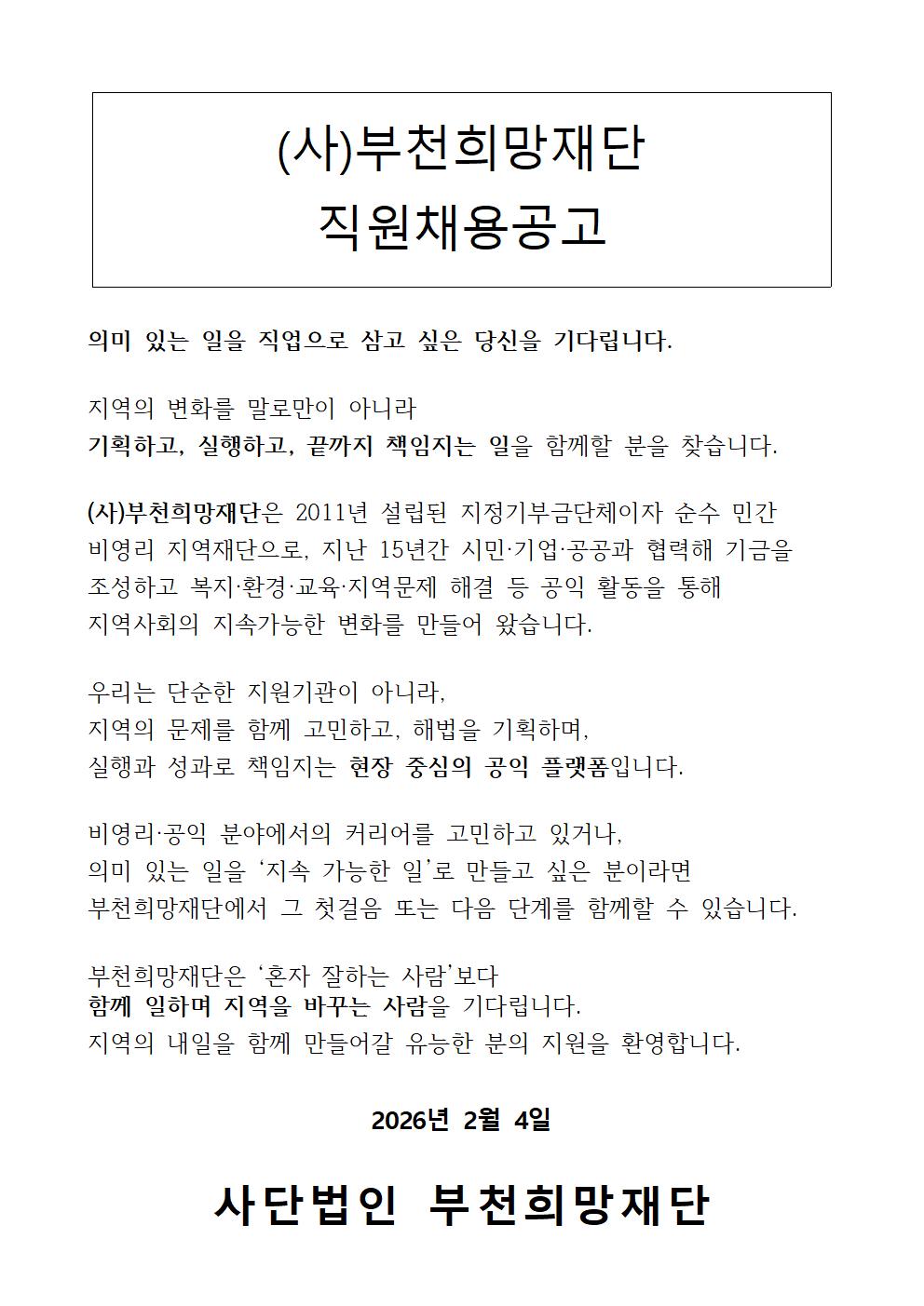 [마감] 부천희망재단 사업 간사 채용 안내